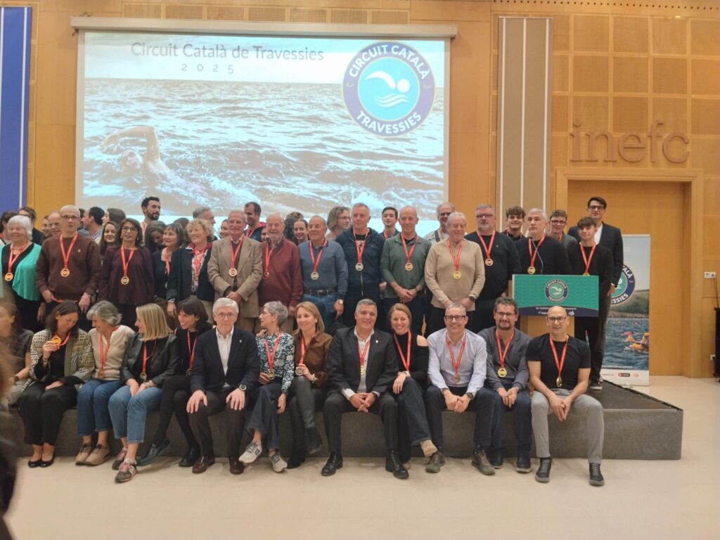 Ahir a la tarda va tenir lloc a la sala d’actes de l’INEFC de Barcelona l’acte de lliurament de guardons als primers classificats de cada categoria del Circuit Català de Travessies de la temporada 2025. Per a poder puntuar en aquest circuit cal ser nedador federat amb algun club de la Federació Catalana de Natació i participar en un mínim de 5 travessies de totes les que es disputen durant la temporada d’aigües obertes.