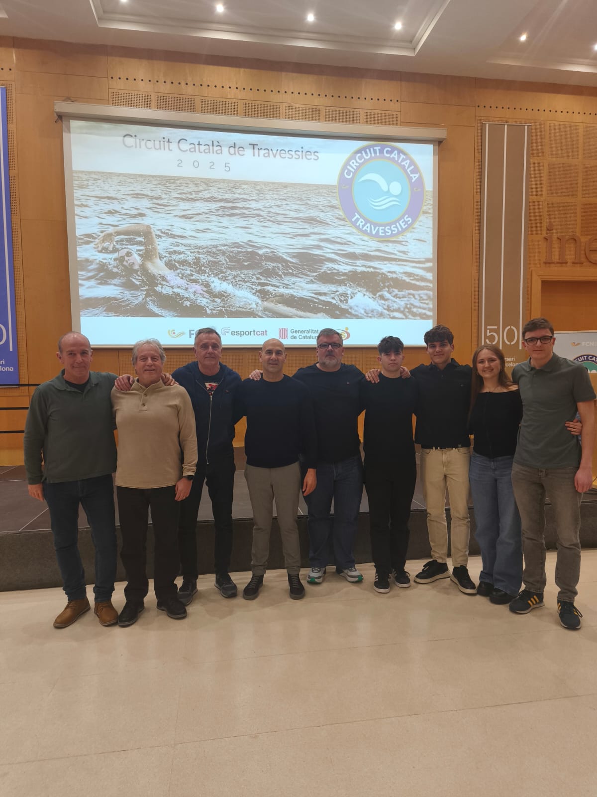 Ahir a la tarda va tenir lloc a la sala d’actes de l’INEFC de Barcelona l’acte de lliurament de guardons als primers classificats de cada categoria del Circuit Català de Travessies de la temporada 2025. Per a poder puntuar en aquest circuit cal ser nedador federat amb algun club de la Federació Catalana de Natació i participar en un mínim de 5 travessies de totes les que es disputen durant la temporada d’aigües obertes.