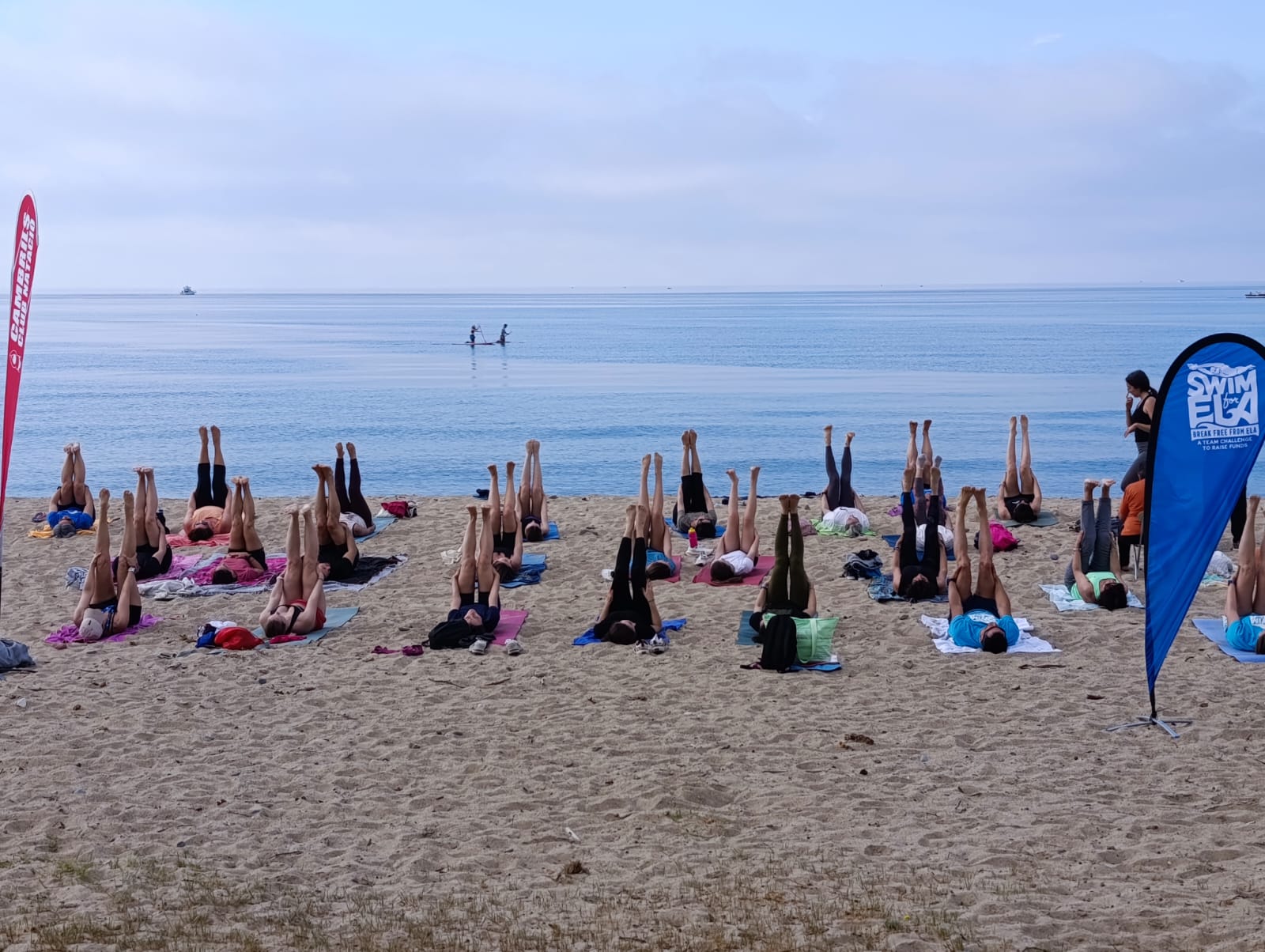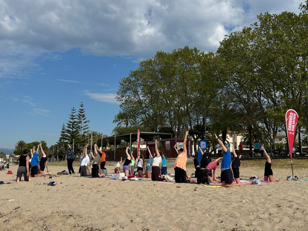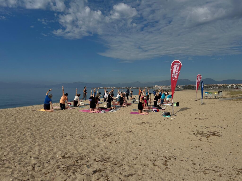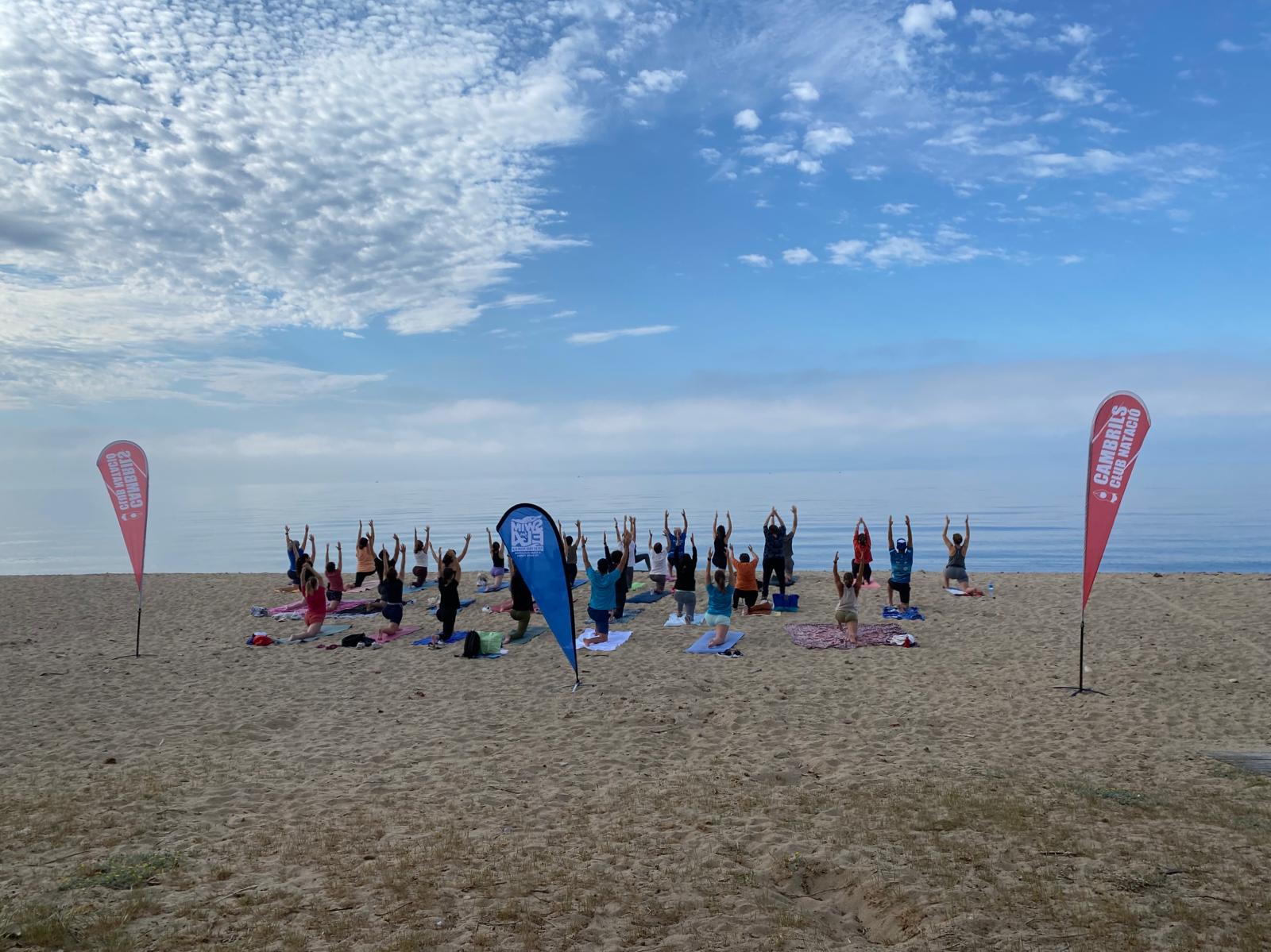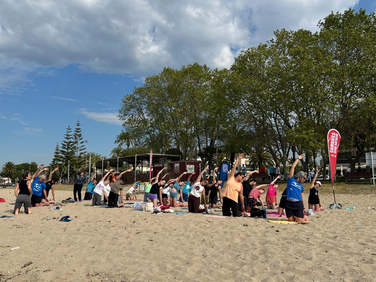 La jornada va començar a les 10:00 amb una classe de ioga vora la mar, impartida per la Patrícia Altieri, nedadora de la secció d’Aigües Obertes del club. La calma de la mar va ser un alicient més per la classe, que va tenir una gran participació.