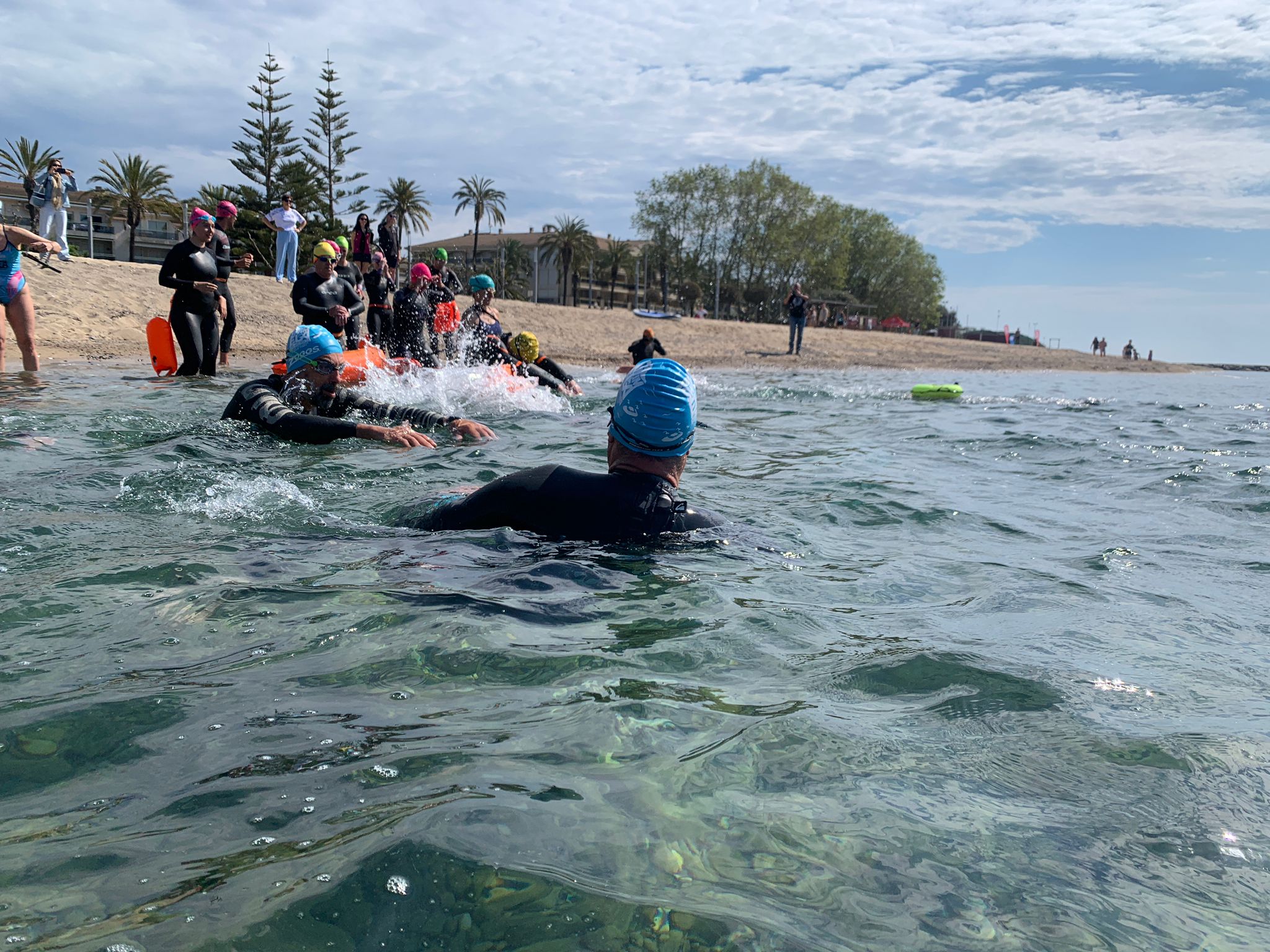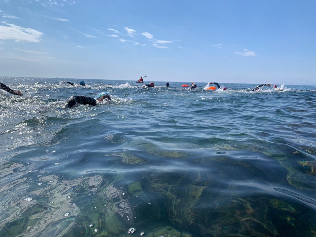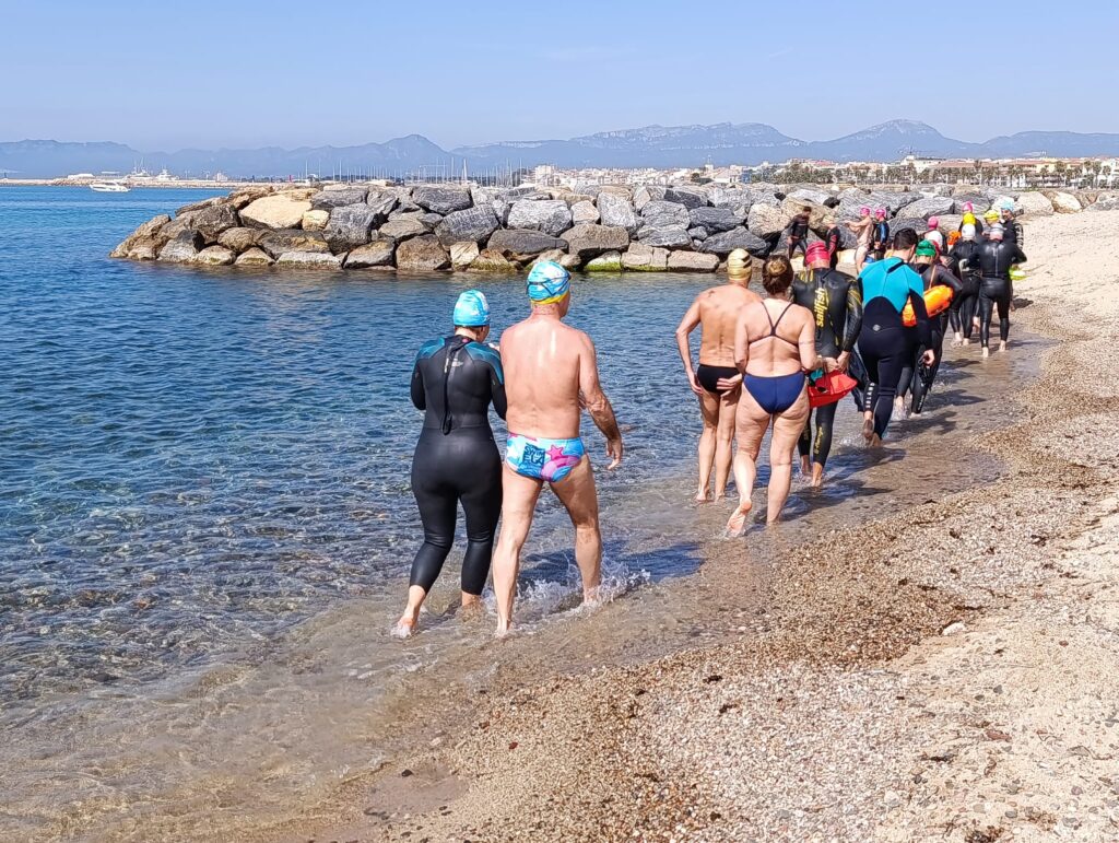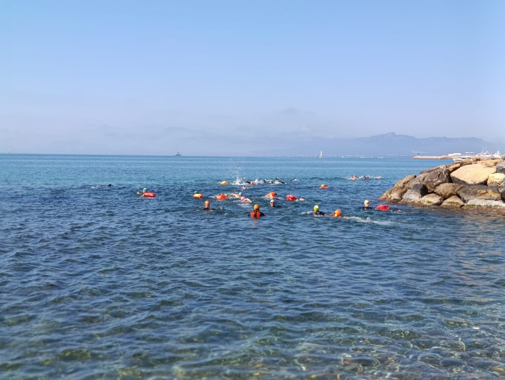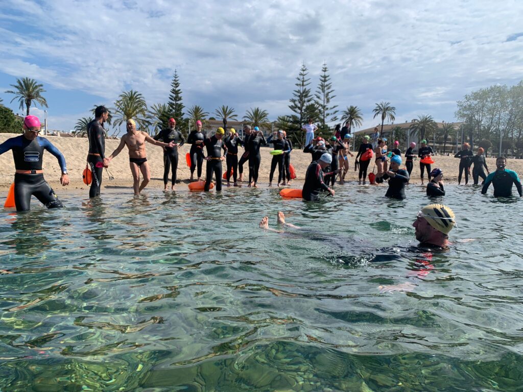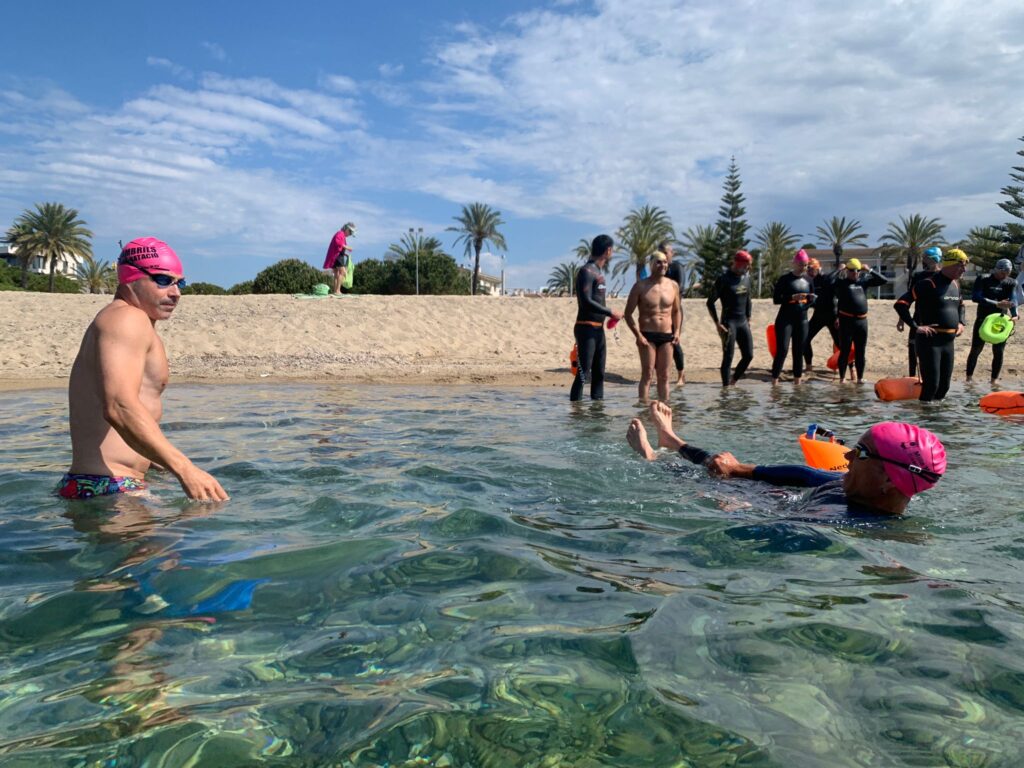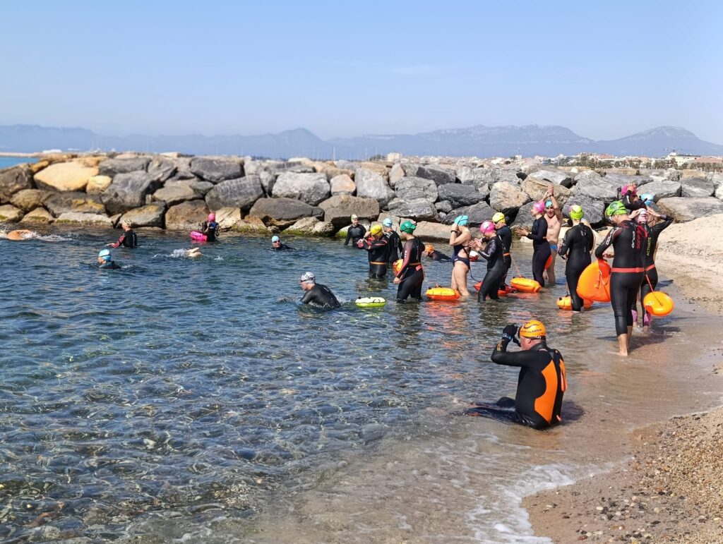 Un cop acabada la classe, va arribar l’hora dels nedadors. A les 11:30, al voltant de 30 nedadors van entrar a la mar per nedar fins a l’espigó de llevant del port i tornar. Paral·lelament, es va muntar una carpa d’avituallament amb begudes i cocs casolans per a què tots els participants puguessin recuperar forces.
