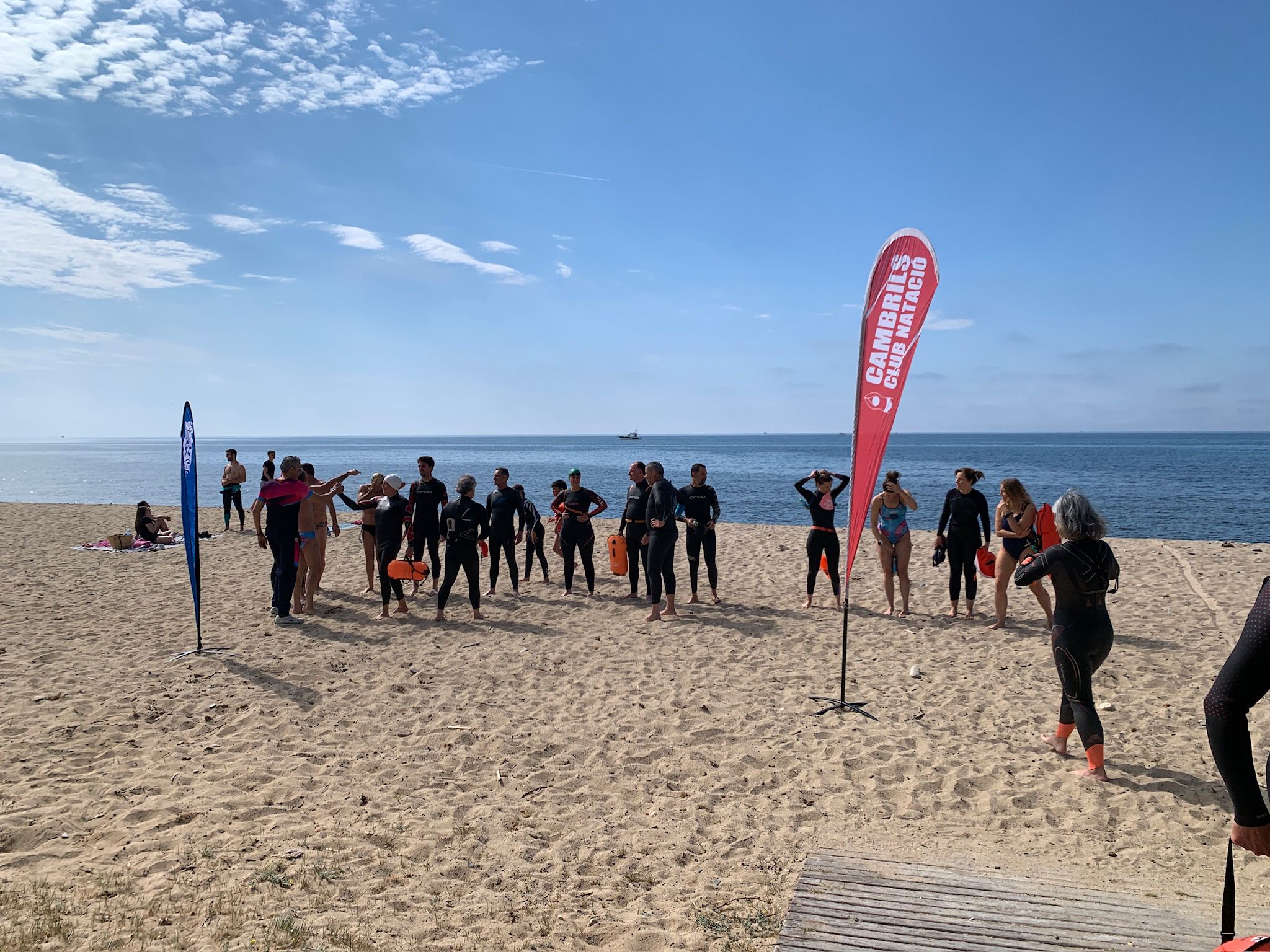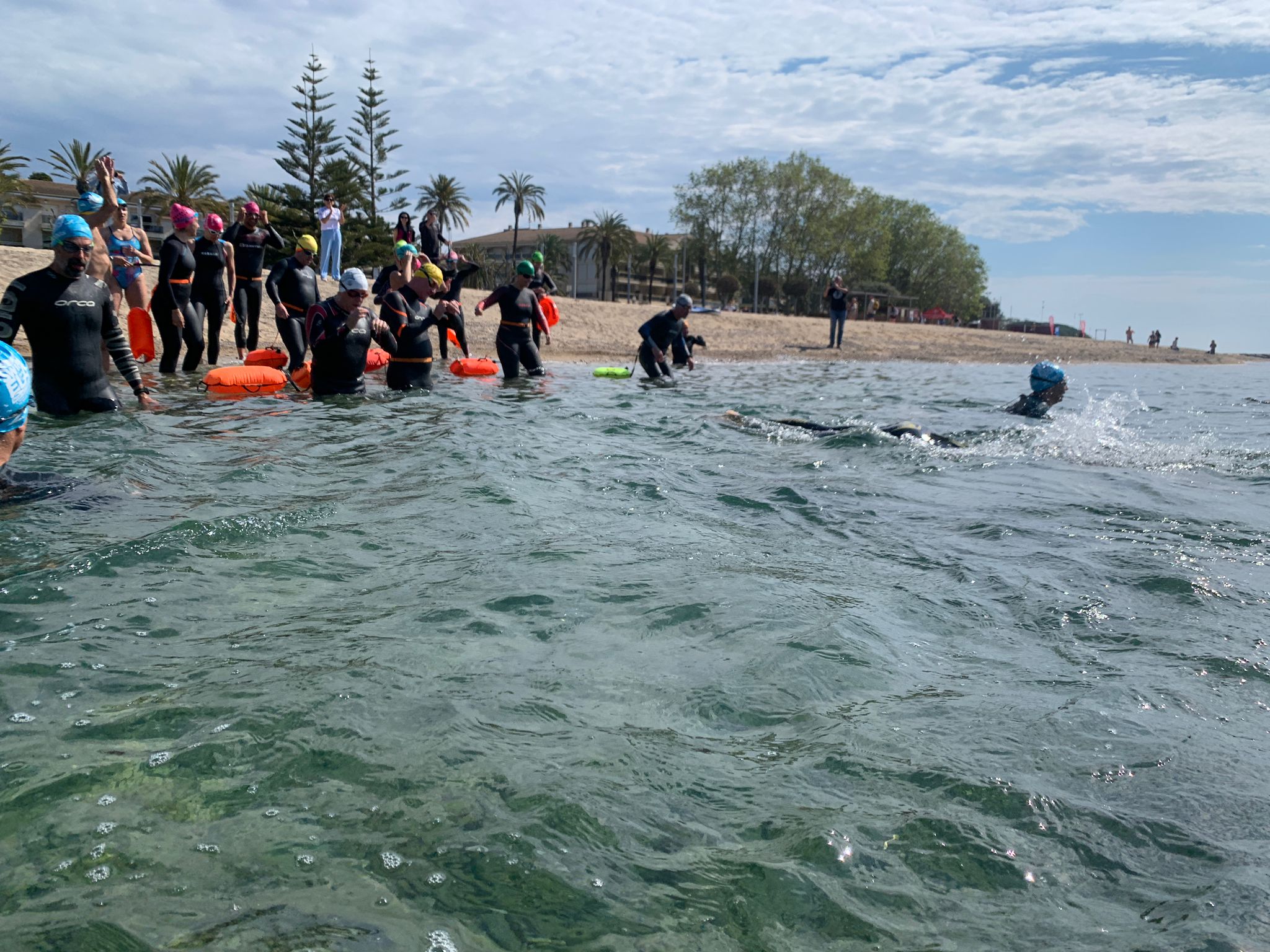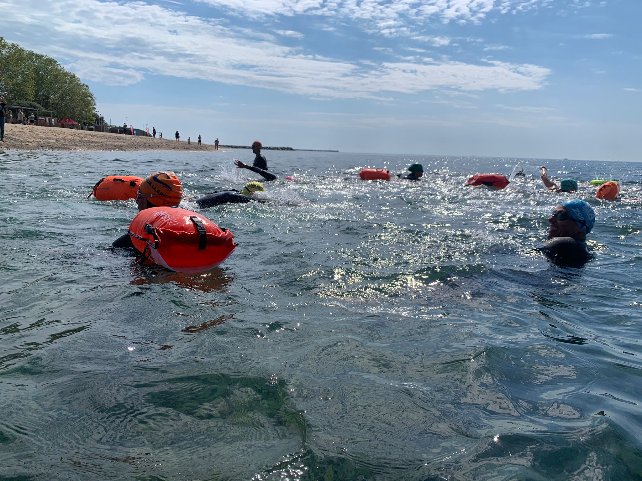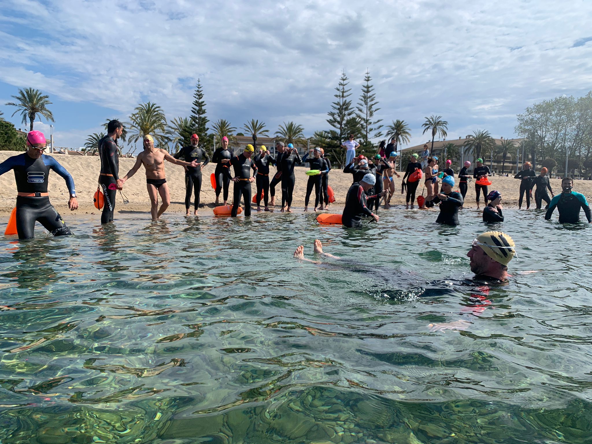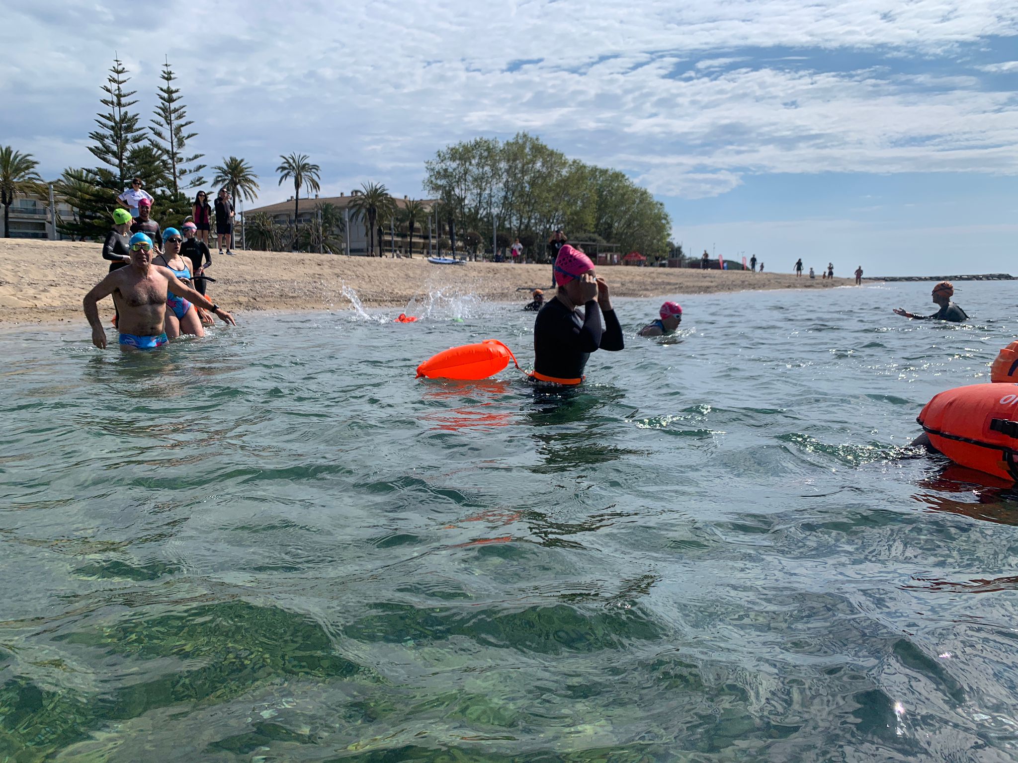 Un cop acabada la classe, va arribar l’hora dels nedadors. A les 11:30, al voltant de 30 nedadors van entrar a la mar per nedar fins a l’espigó de llevant del port i tornar. Paral·lelament, es va muntar una carpa d’avituallament amb begudes i cocs casolans per a què tots els participants puguessin recuperar forces.