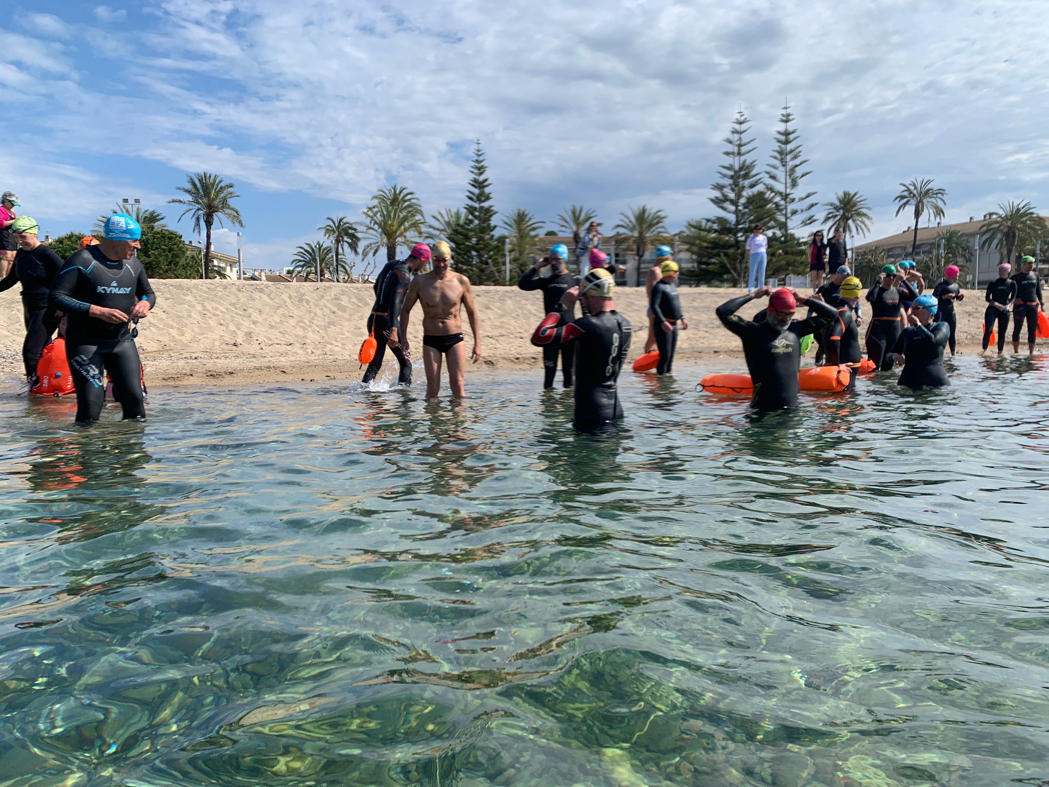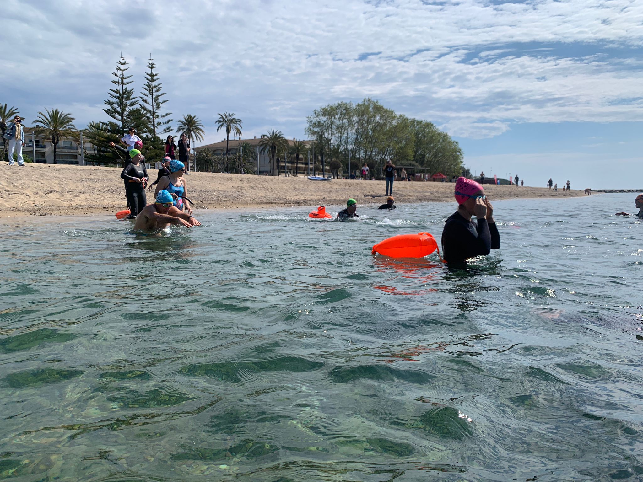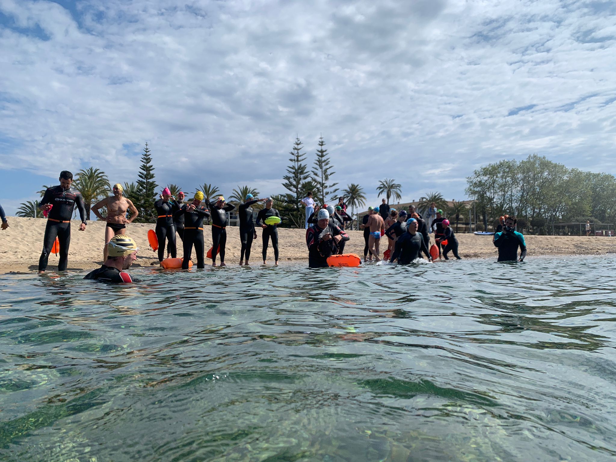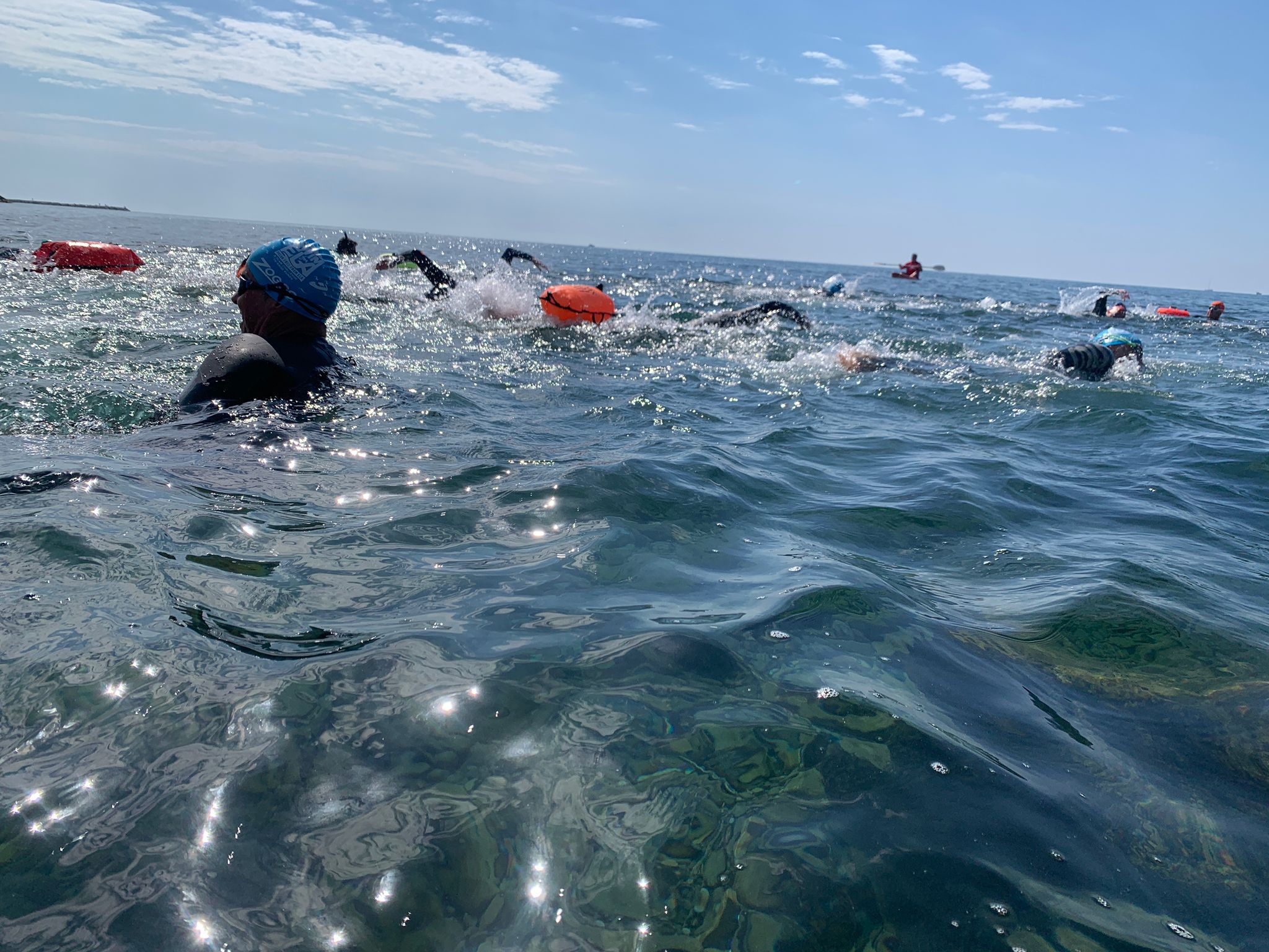 Un cop acabada la classe, va arribar l’hora dels nedadors. A les 11:30, al voltant de 30 nedadors van entrar a la mar per nedar fins a l’espigó de llevant del port i tornar. Paral·lelament, es va muntar una carpa d’avituallament amb begudes i cocs casolans per a què tots els participants puguessin recuperar forces.