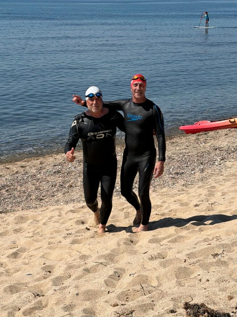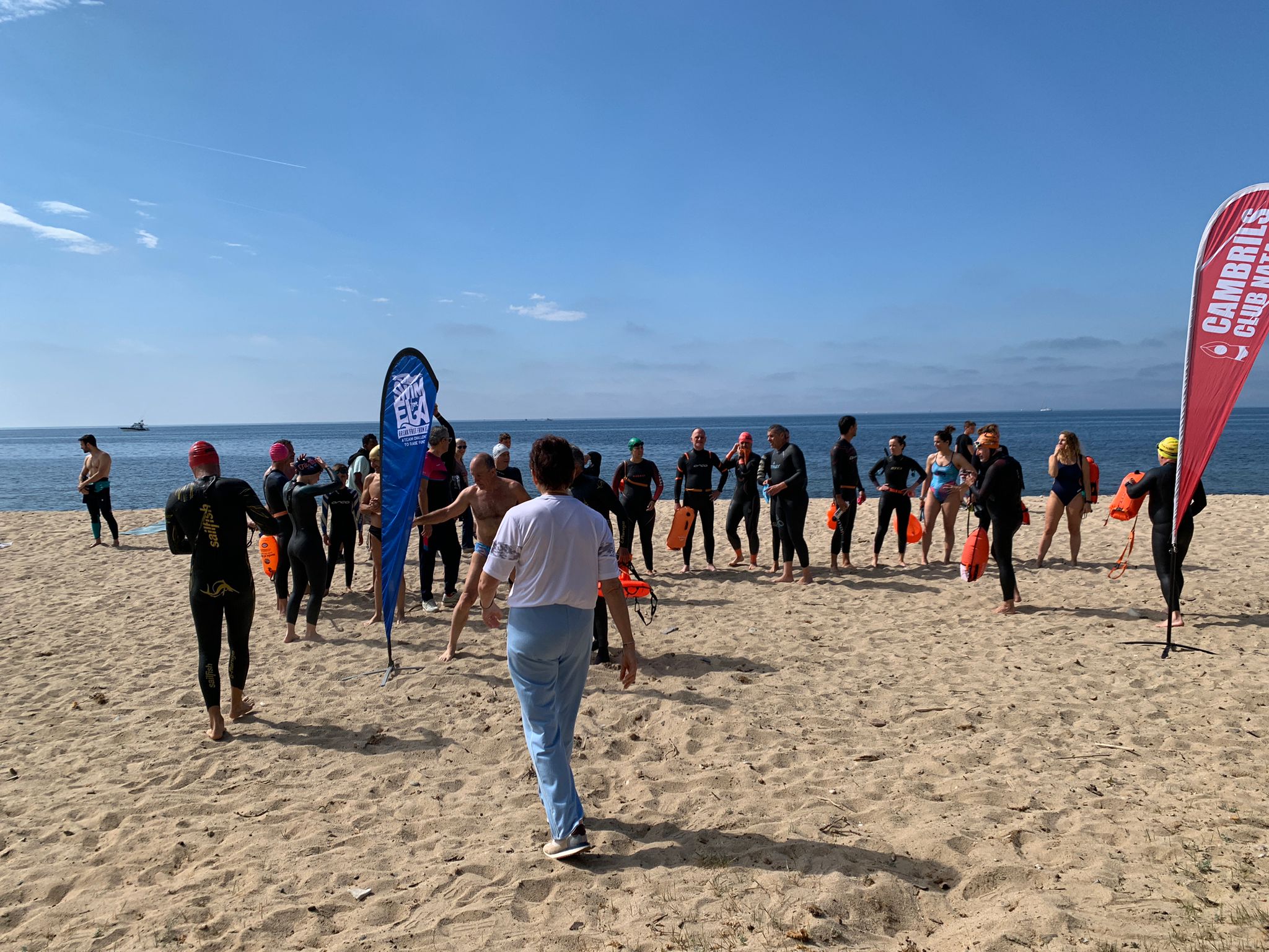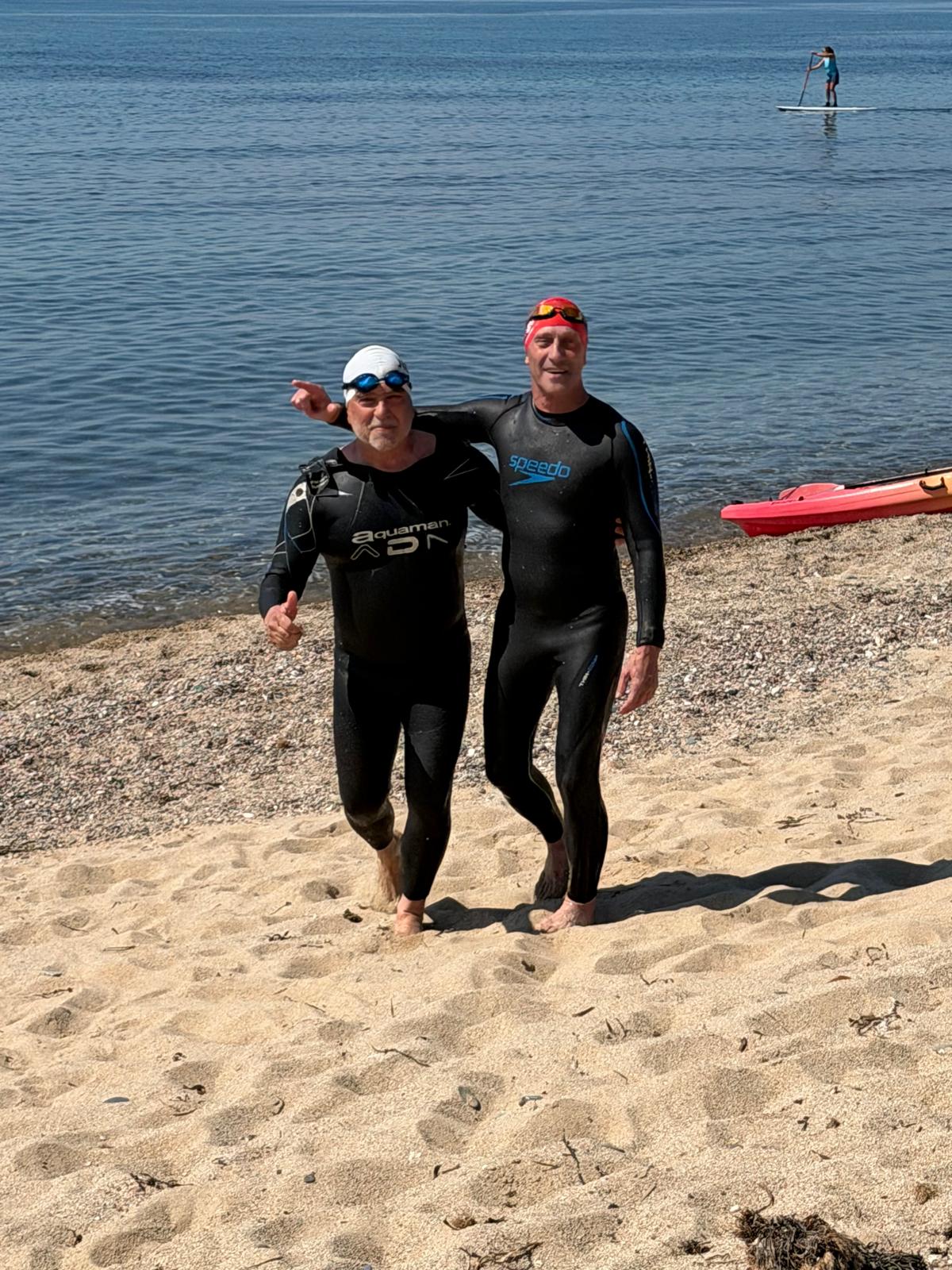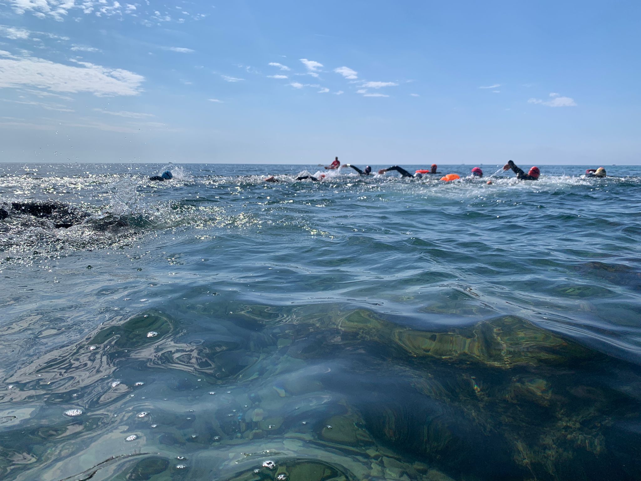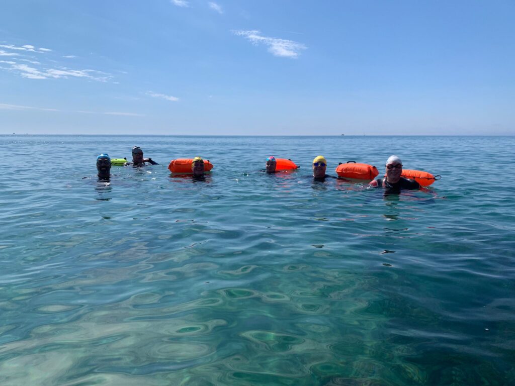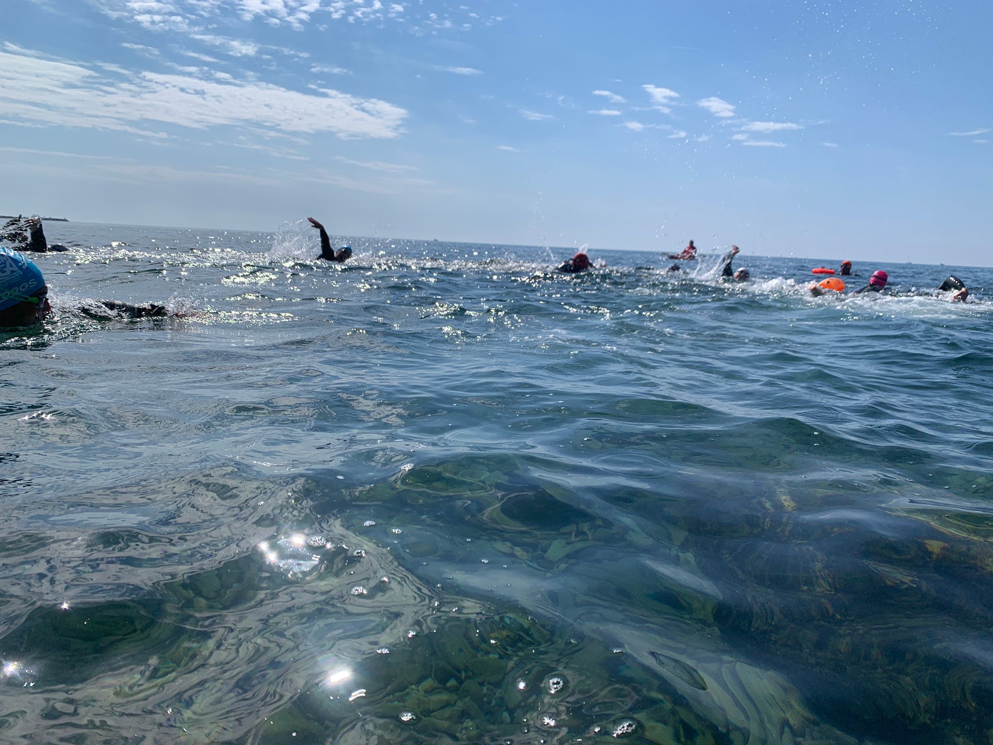 Un cop acabada la classe, va arribar l’hora dels nedadors. A les 11:30, al voltant de 30 nedadors van entrar a la mar per nedar fins a l’espigó de llevant del port i tornar. Paral·lelament, es va muntar una carpa d’avituallament amb begudes i cocs casolans per a què tots els participants puguessin recuperar forces.
