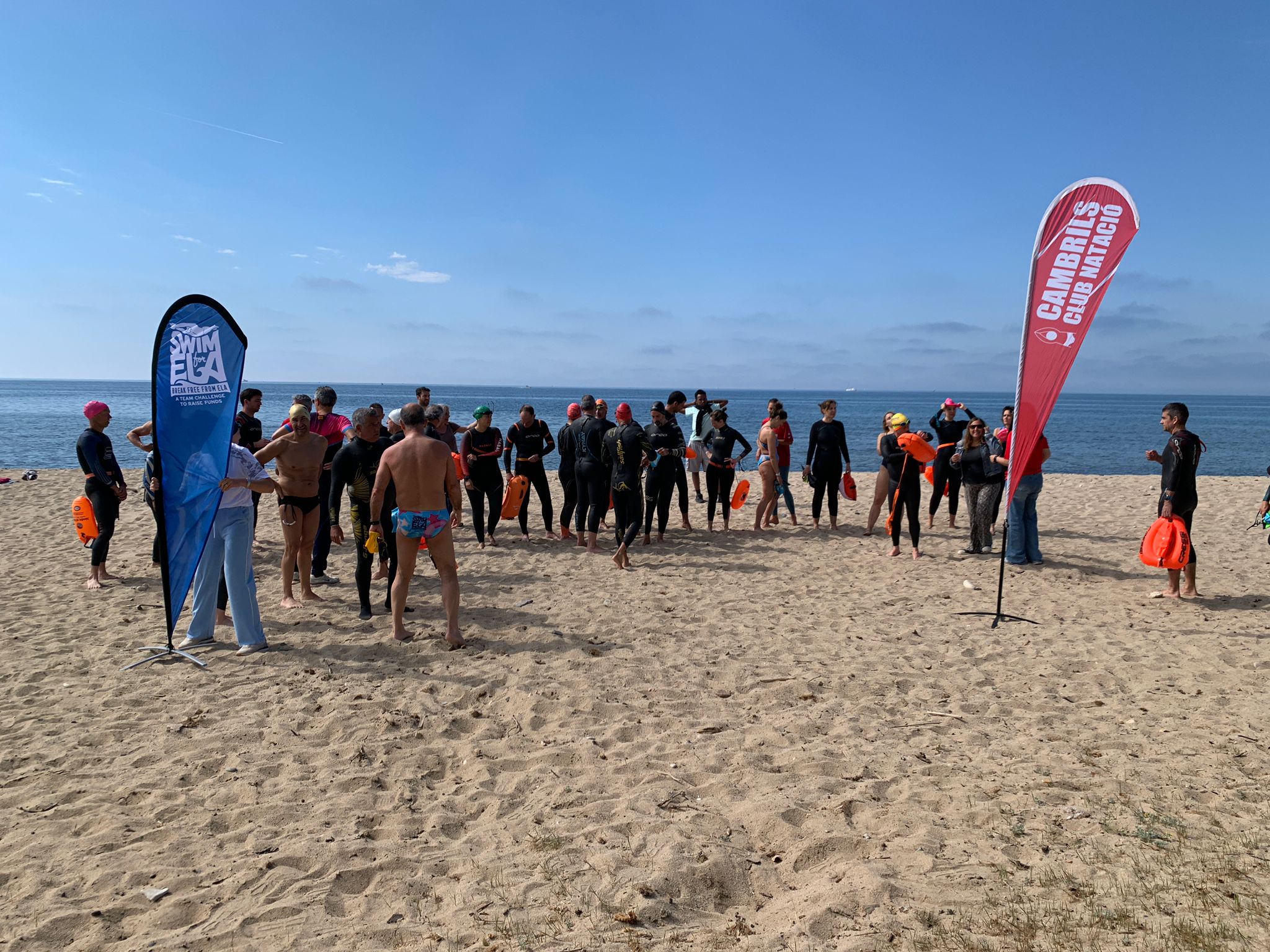 Hi ha dies que fins i tot el temps acompanya i ahir va ser un d’aquests dies. Els integrants dels 2 equips del nostre club que nedaran la travessia solidària Swim for ELA el proper 23 de maig van organitzar, amb el suport del club, dues activitats per a recaptar fons i poder completar els 500€ que cada equip participant ha d’aportar.